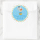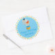 Cet autocollant sur le thème du cirque présente un arrière - plan bleu entouré d'un motif répétitif d'étoiles rouges, bleues, jaunes et vertes. Un mignon éléphant de cirque se tient sur une boule de cirque au milieu de l'autocollant. Personnalisez la zone de modèle en bas avec un nom ou un autre texte. Ce design fait partie de ma collection "Circus Thems Birthday Party". Clip art par Prettygrafik design etsy.com/shop/Prettygrafikdesign