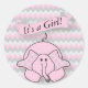 Sticker Rond Eléphant bébé rose et gris Chevron