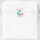 Sticker Rond Eléphant Bleu Cute Avec Baby shower Fleurs Rouges