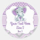 Sticker Cercle étiquette avec joli Eléphant/Arachide fille en violet et gris