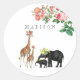Sticker Rond Eléphant mignon et girafe Floral Nom personnalisé
