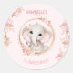 Stickers avec le plus mignon bébé éléphant dans un cercle doré et fleurs roses, roses sur l'arrière - plan rose clair pour 1er anniversaire ou tout Anniversaire d'une petite fille. Personnalisez facilement le texte. - Kate Eden Art