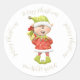 Sticker Rond Elfe de Noël avec présent