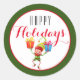 Sticker Rond Elfe mignonne avec cadeaux Joyeux vacances/vert