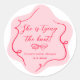 Elle noue le nœud rétro ondulé rose rouge Autocollant rond classique