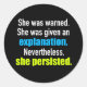 Elle a été prévenue. On lui a donné une explication. Néanmoins, elle a persisté. Une citation forte soutenant Elizabeth Warren et ses efforts pour laisser les voix des démocrates se faire entendre au sénat. N'arrêtez jamais de croire au progrès.