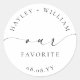 Ces autocollants de faveur de mariage présentent un design minimaliste et un titre en calligraphie. Personnalisez l'autocollant avec vos noms et date, le titre en script n'est pas modifiable. Ces autocollants de faveur peuvent être utilisés pour les mariages, les douches de mariée, les douches de bébé, les anniversaires ou tout autre événement. Pour une personnalisation plus avancée de ce design, sélectionnez simplement le bouton "Personnaliser" ci-dessus.