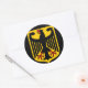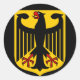 Armoiries de l'Allemagne. Les armoiries de l'Allemagne arborent un aigle noir (l'"aigle fédéral" du Bundesadler, anciennement "aigle impérial" du Reichsadler) sur un bouclier jaune (ou aigle affiché en sable). Il s'agit d'une réintroduction des armoiries de la République de Weimar (en vigueur 1919-1935) adoptées par la République fédérale d'Allemagne en 1950. La conception officielle actuelle est due à Tobias Schwab (1887-1967) et a été introduite en 1928.