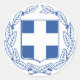 Armoiries de la Grèce. Les armoiries de la Grèce arborent une croix blanche sur une escutcheon bleue, entourée de deux branches de laurier. La constitution ne précise pas de teinture pour les branches, ce qui implique qu'elle soit correcte (c.-à-d. verte). Le gouvernement grec utilise normalement un design dans lequel les branches de laurier sont bleu monochrome. Une version avec des feuilles en or est affichée par l'armée et sur la norme présidentielle.