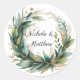 Sticker Rond Emerald Green and Gold Floral Frame Wedding