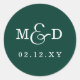 Sticker Rond Emerald Green Simple moderne Mariage Monogramme