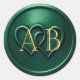 Sticker Rond Emerald Two Hearts Intertwined Monogram Wedding