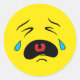 Ce triste petit visage d'émoticônes est en train de passer une mauvaise journée. Face en pleurant avec un arrière - plan jaune vif.