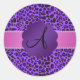 Motif léopard violet cercle pétoncle et diamants roses (faux diamants, pas réels) bande et lettre monogramme changer à une lettre a, b, c, d, e, f, g, h, i, j, k, l, m, n, o, p, q, r, s, t, u, v, w, x, y, z