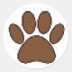 Empreinte de patte chien avec effet pixel appliqué à l'image. Dessin original en noir et marron.