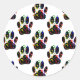 Sticker Rond Empreintes de pattes Confetti Et Motif Party Strea