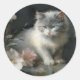 Sticker Rond En Compagnie De Fleurs Gris et Blanc Kitten