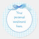 Autocollant rond avec une image de en vichy bleu bébé et un cercle blanc avec une bordure bleue, joli coup bleu et texte personnalisable. Une touche spéciale merveilleuse pour vos invitations à la douche bébé ou un cadeau. Voir ballotin correspondant, étiquette de faveur et étiquette. Voir l'ensemble de la collection Kids’ Corner Sticker dans les INVITATIONS | Section Stickers & Étiquettes.
