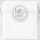 Eléphant avec adorable motif en vichy vérificateur gris et oreilles pois et coeurs vert menthe nouveaux auto-collants pour bébé parfait pour un baby shower neutre. Ajoutez aux faveurs et merci aux invités d'y être venus.