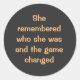 ‘Elle se souvient de qui elle était et le jeu a changé.’ simple et élégant et les femmes encouragements citent avec un texte simple sur sticker rond classique. il est entièrement personnalisable vous pouvez le changer selon votre choix