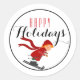 Sticker Rond Enfant en Red Skier Joyeux Vacances / Blanc