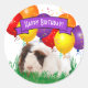 Ce design autocollant modèle présente un cobaye marron et blanc mignon dans l'herbe avec des ballons colorés dans l'arrière - plan avec une bannière violette pour mettre en évidence "Joyeux anniversaire". Personnalisez le champ de texte ou cliquez sur personnaliser pour sélectionner le style, la couleur et la taille de la police que vous souhaitez.