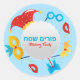 Sticker Rond Enfants Bleu Hébreu Joyeux Purim
