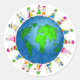Divers groupes d'enfants du monde entier fêtent Noël en jouant un jeu de nativité.