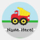 Les couleurs primaires adorables et fraîches sont l'élément clé de ce cadeau à thème de construction de camions à benne pour enfants ou garçons mignons. Comprend un camion à benne de travail avec un corps rouge, un lit à benne jaune et des rondelles de roue, des gaz d'échappement et des pare-chocs gris. L'arrière - plan contient une route asphaltée grise avec des marques blanches, vert pour l'herbe et bleu pour un ciel. Un grand thème pour un décor de garçon, de constructeur et de bâtiment des métiers ou de grande machine à enfant décoration de chambre à thème. Tous les Designs Copyright © www.CustomInvitesOnline.com Ce design est disponible en collection complète !