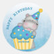 Sticker Rond Enfants Hippo Anniversaire Cupcake Sprinkings Pers