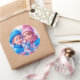 Jolie aquarelle autocollants de Noël. Deux mignons enfants vintages, un garçon et une fille, frère et soeur tenant des chatons en casquettes d'hiver bleu et rose.