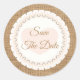 Sticker Rond Enregistrer l'autocollant Mariage de Burlap rustiq