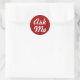 Ces autocollants sont parfaits pour les enseignants ! Elles sont également idéales pour les événements où des membres du personnel ou des aides doivent être désignés. Le design de l'autocollant comporte du texte blanc qui dit, "Demandez-moi" sur un arrière - plan rouge. Vous avez la possibilité de changer le texte de l'autocollant en message personnalisé si vous le souhaitez. . La zone de texte pour entrer vos informations personnalisées se trouve dans la colonne située à droite de la page Web. Si vous préférez changer la police, cliquez sur le bouton "Customiser", et Zazzle vous permettra facilement de faire cela aussi bien. Les autocollants sont disponibles en deux tailles : petits et grands. Elles sont très belles à la fois ! Lors de la commande de petits autocollants, vous recevrez une feuille de 20. Lors de la commande de gros autocollants, vous recevrez une feuille de 6. Les autocollants Zazzle sont d'excellente qualité, et je sais que vous serez satisfait de votre achat. Merci de m'envoyer un message via Zazzle si vous avez des questions ou des préoccupations concernant la conception de ce produit.