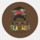 Sticker Rond Enseignant Vie Messy Bun Cheveux Fête des Femmes E