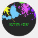 Enseignants, Étudiants Stickers avec néon look peinture splatter. Le texte peut être modifié pour lire ce que vous voulez, "Super emploi", "100%", "You Rock", "Étudiant du jour". Egalement de grands autocollants de Merci avec des invitations Neon look et des cartes RSVP pour le Sweet sixteen, Quinceanera et Bat / Bar Mitzvah.