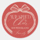 Célébrez la magie de la saison des Fêtes avec notre élégant autocollant à l'arc pois de Noël. Il dispose d'une charmante arbalète à pois avec des queues de ruban drapées gracieusement. Personnalisez avec le nom. Conception et dessin par © Moodthology Papery