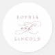 Sticker Rond Enveloppe de calligraphie or Rose romantique