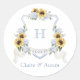 Sticker Mariage Enveloppe Sunflowers Dusty Blue Hydrangea Crest . Sticker Mariage d'enveloppe de verdure Hydrangea blanche. Sticker d'enveloppe de monogramme bleu poussiéreux