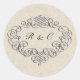Un élégant sceau d'enveloppe ronde, décoré dans un style argenté et orné, se dresse contre un arrière - plan beige légèrement tapissé. Les initiales monogrammées peuvent être customisées pour convenir - ou enlevées complètement si elles sont préférées.