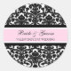 Enveloppe autocollante pour mariée et groom pour mariage à thème de la Saint-Valentin, avec motif élégant et moderne, rose pâle pastel clair, noir et blanc vintage damassé à fleurs. Entièrement personnalisable avec votre propre texte, l'ajout parfait à vos invitations de mariage de la Saint-Valentin.