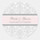 Enveloppe autocollante pour mariée et groom pour mariage à thème de la Saint-Valentin, avec motif élégant et moderne pastel rose pâle, gris et blanc vintage damassé floral clair. Entièrement personnalisable avec votre propre texte, l'ajout parfait à vos invitations de mariage de la Saint-Valentin.
