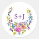 Sticker Rond Enveloppe Mariage de monogramme de fleurs de prune
