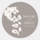 Sticker rond classique pour Mariage à orchidée blanche moderne - Ajoutez une touche de finition raffinée à votre papeterie mariage avec cet autocollant rond avec orchidées blanches sur un arrière - plan gris doux. Idéal pour sceller une enveloppe ou favoriser le étiquette, il complète magnifiquement les thèmes minimalistes et élégants de mariage.