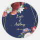 Burgundy rose verdure marine bleu arrière - plan or géométrique cadre mariage floral autocollants enveloppe.