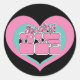 Sticker Rond Envoi d'amour Retro Coeur Noir Rose Mint
