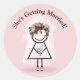 Sticker Rond Épouse Stick Girl en Basket sur rose