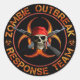 Équipe d'intervention en cas d'éclosion de zombie, logo circulaire avec symbole de risque biologique, AK47 et crâne zombie.