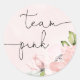 Équipe fille révélation de sexe rose floral, équipe rose Autocollant Rond Classique.