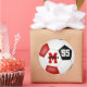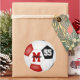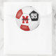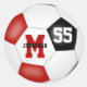 Ces autocollants ronds de 3 pouces pour un garçon ou une fille de l'équipe colorent le football avec un simple graphique de ballon de football avec des panneaux rouges, noirs et blancs - personnaliser avec le nom de l'athlète, monogramme et numéro de maillot - par katz_d_zynes