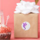 Sticker Rond Escalade Gecko violet sur un mur blanc